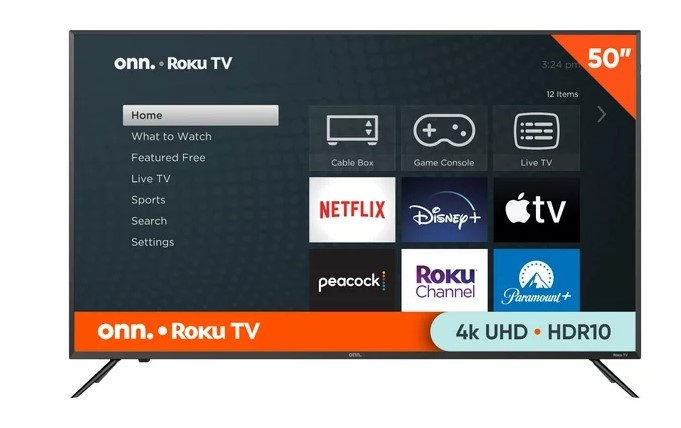 onn. 50” Class 4K UHD (2160P) LED Roku Smart TV HDR (100133204) – $148