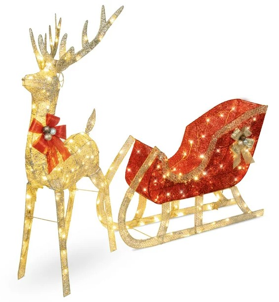 Lighted Christmas 4ft Reindeer & Sleigh Outdoor Yard Decoration Set – $119.99 (reg. $230)