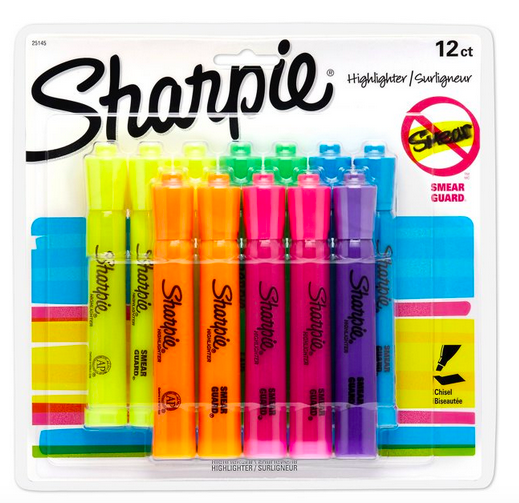 Sharpie Tank Style Highlighters, Chisel Tip, Assorted Fluorescent, 12 Count – $5.97
