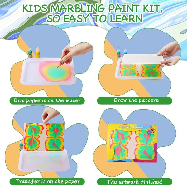 • BEST GIFT FOR KIDS OF ALL AGES-This arts & crafts painting set is suitable for kids or teenagers in all ages. Follow the instruction booklet, drop the paint on the drawing liquid,swirl or draw to any patterns, transfer it on paper and let it dry, then you will receive a surprising artwork. And painting on water is completely different from the traditional painting on paper or canvas, kids will fall in love with it.