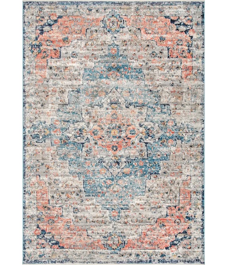 Deja Traditional Power Loom Performance Coral/Navy Rug, 8×10 Rectangle – $141.99 (reg. $315)