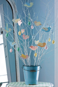 I love Easter trees!  I found this one from Better Homes & Gardens; it’s so easy to make!  Just bring in some branches from the yard that you can later put into a bucket or a jar.  You can either paint the branches or leave them natural.