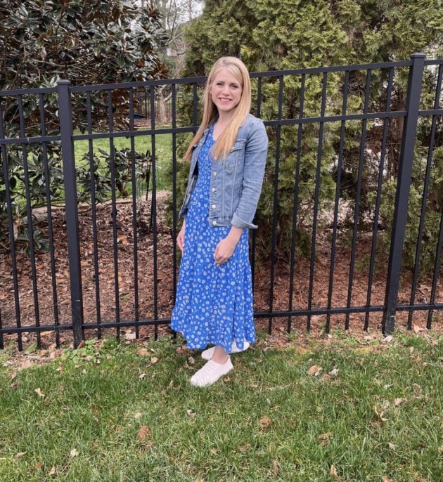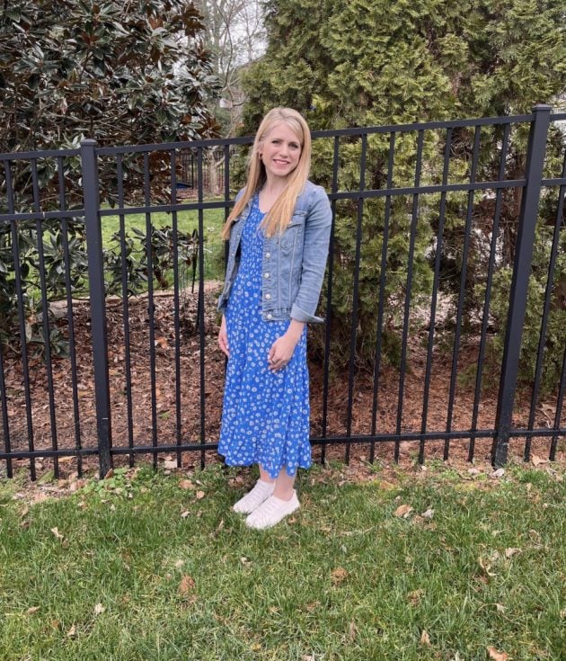 Pair it with a jean jacket or sweater on cooler days! I thought it was a little on the small size so if you are in between sizes, I’d recommend sizing up.