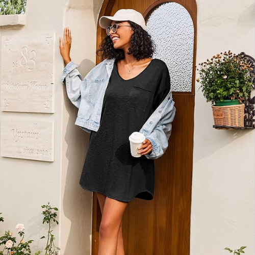 - Dressing Suggestions: Short sleeve and knee length t-shirt nightgowns, loose style can be used in the living room or on a date. If you want to be exquisite, you can match it with a belt, shirt or pants, and wear high heels or boots as a fashion item
