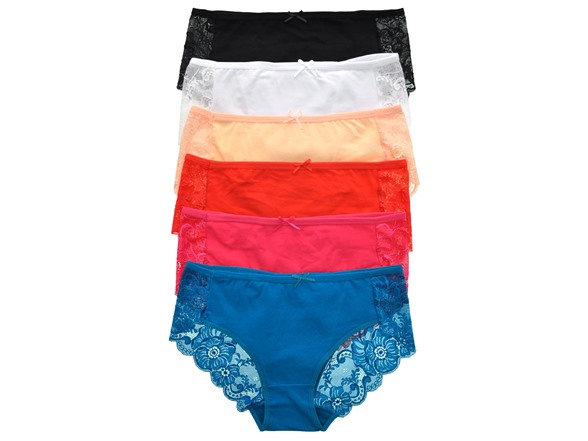 Angelina Cotton Hiphuggers with Cheeky Floral Lace Accent (6-Pack) – $16.99 (reg. $75)