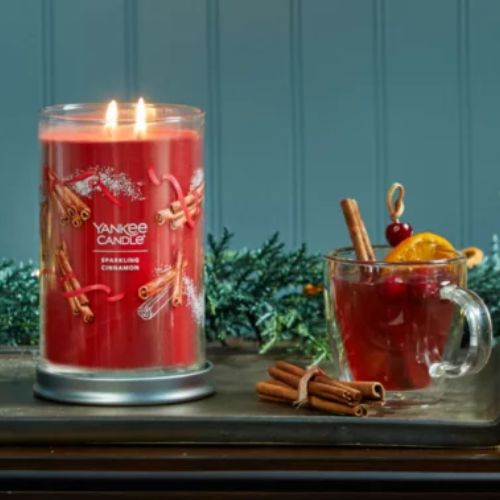 Hop over to Yankee Candle and get a deal on Large Candles. To give you an idea, you can get this Sparkling Cinnamon Signature Large Tumbler Candle for only $15 regularly $34. This is a Sweet & Spicy fragrance. Holiday glow…the spicy warmth of real imported stick cinnamon with a hint of cloves. Get hundreds of Large Candles to choose from for only $15 each.