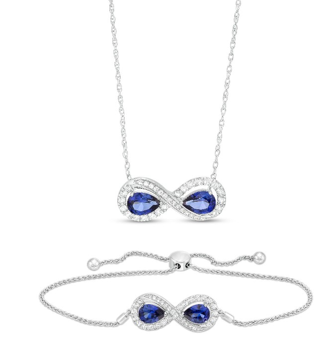 Pear-Shaped Blue and White Lab-Created Sapphire Infinity Loop Necklace and Bolo Bracelet Set – $149.98 (reg. $249)