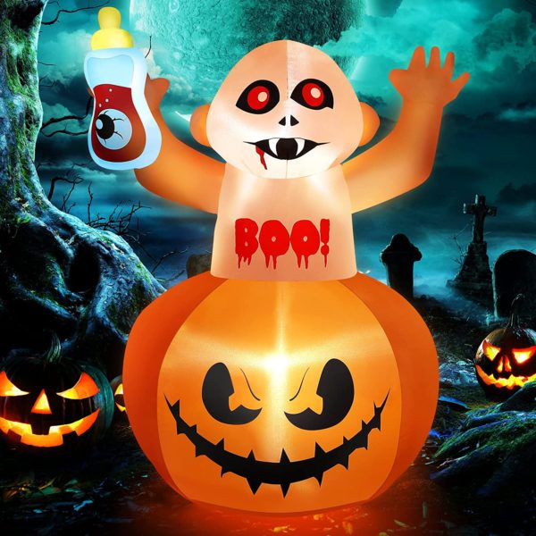 - Nice Outdoor Decorations for Halloween-This lighted Halloween blow up prop will be a good addition to your Halloween decoration, with pumpkin and zombie baby design, it will create a strong Halloween atmosphere, ideal for indoor, outdoor, home, yard, lawn and garden decor